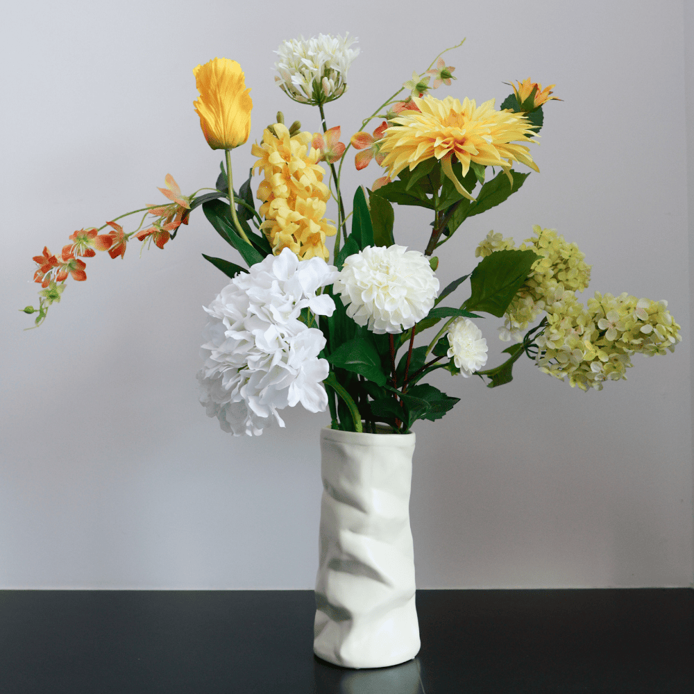Fresh flowers are beautiful, but also fleeting, high-maintenance, and expensive if you buy new ones regularly. Our silk flowers offer the same emotion, color, and elegance, but without the disappointment of wilting. You can endlessly enjoy the atmosphere that flowers bring, without having to keep investing or saying goodbye to a bouquet that seemed to have just blossomed.