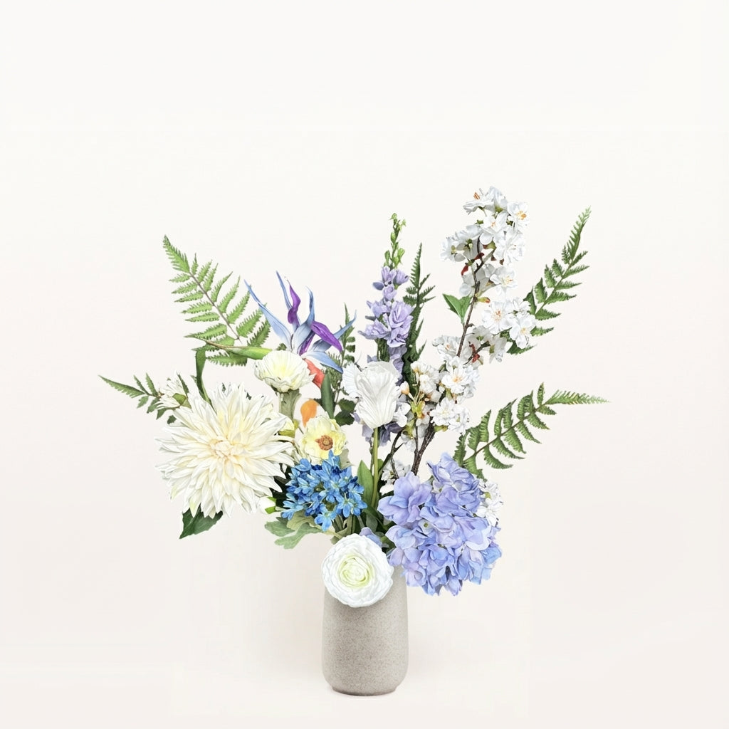 Ce bouquet apporte chaleur, calme et caractère à la maison et s'adapte aussi bien aux intérieurs modernes que classiques. Un élément décoratif durable qui ne nécessite aucun entretien, tout en dégageant le luxe et la douceur des vraies fleurs.