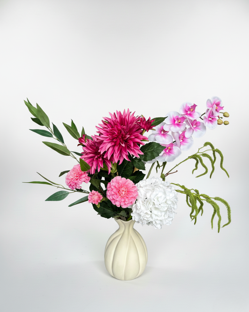This bouquet brings warmth, calm, and character to your home and suits both modern and classic interiors. A lasting eye-catcher that requires no care but exudes the luxury and softness of real flowers.