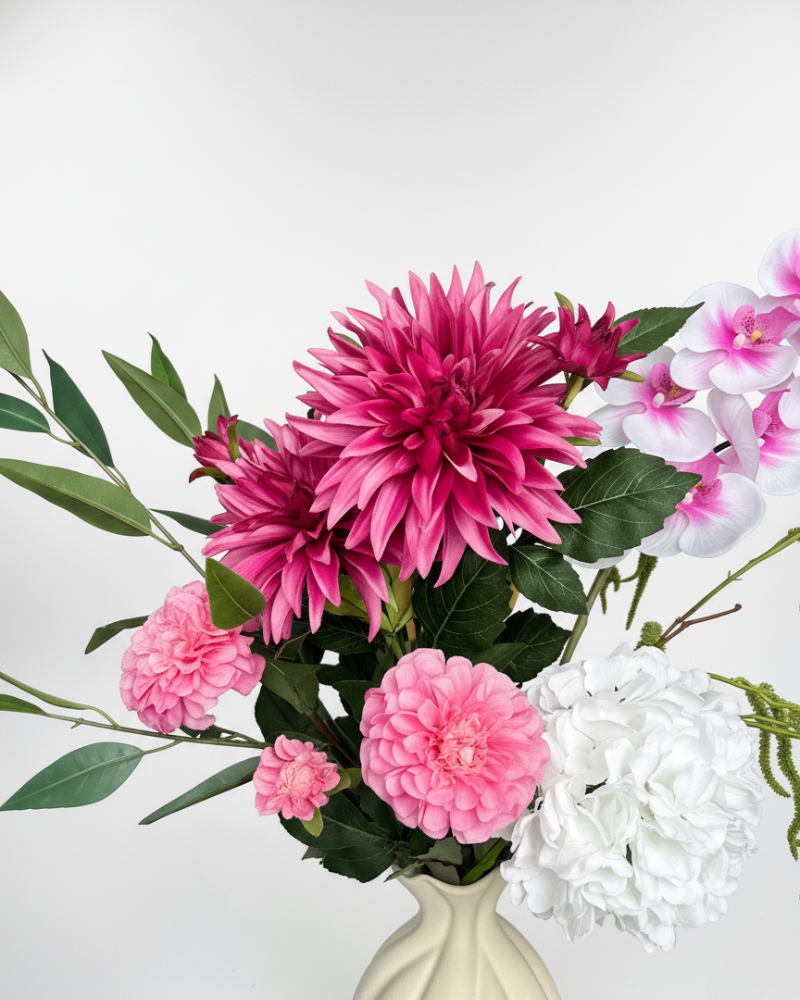 “I was initially skeptical but this bouquet is perfectly finished. Always in bloom, no care needed, and it fits beautifully in my interior.