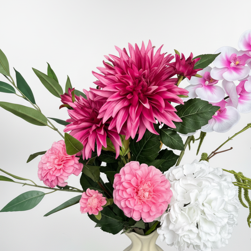 “I was initially skeptical, but this bouquet is perfectly finished. Always in bloom, no care needed, and it fits beautifully in my interior.