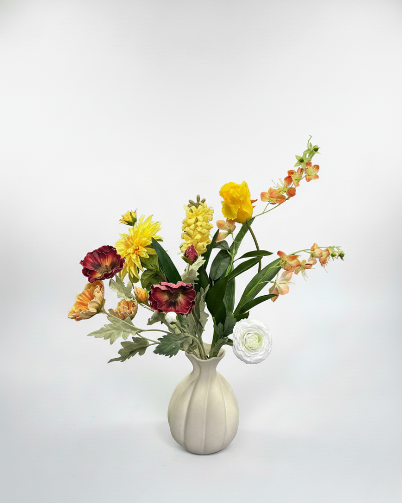 This bouquet brings warmth, calm, and character to your home and suits both modern and classic interiors. A lasting eye-catcher that requires no care but exudes the luxury and softness of real flowers.